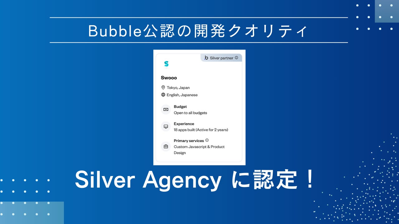 【Swooo】ノーコードBubble社公認の開発代理店 Silver Agencyに認定されました!