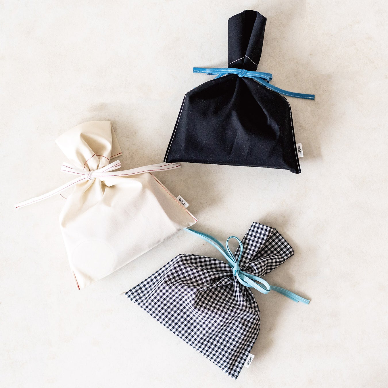 贈り物に、紙ではなくファブリックのラッピングを選ぶとより一層特別感が出るけれど、そのラッピングを残していても他に使い道がないことが気になり誕生したギフトバッグ。 もらった後も使い道がある、ラッピングで終わらないというのが2wayミニギフトバッグの特徴です。