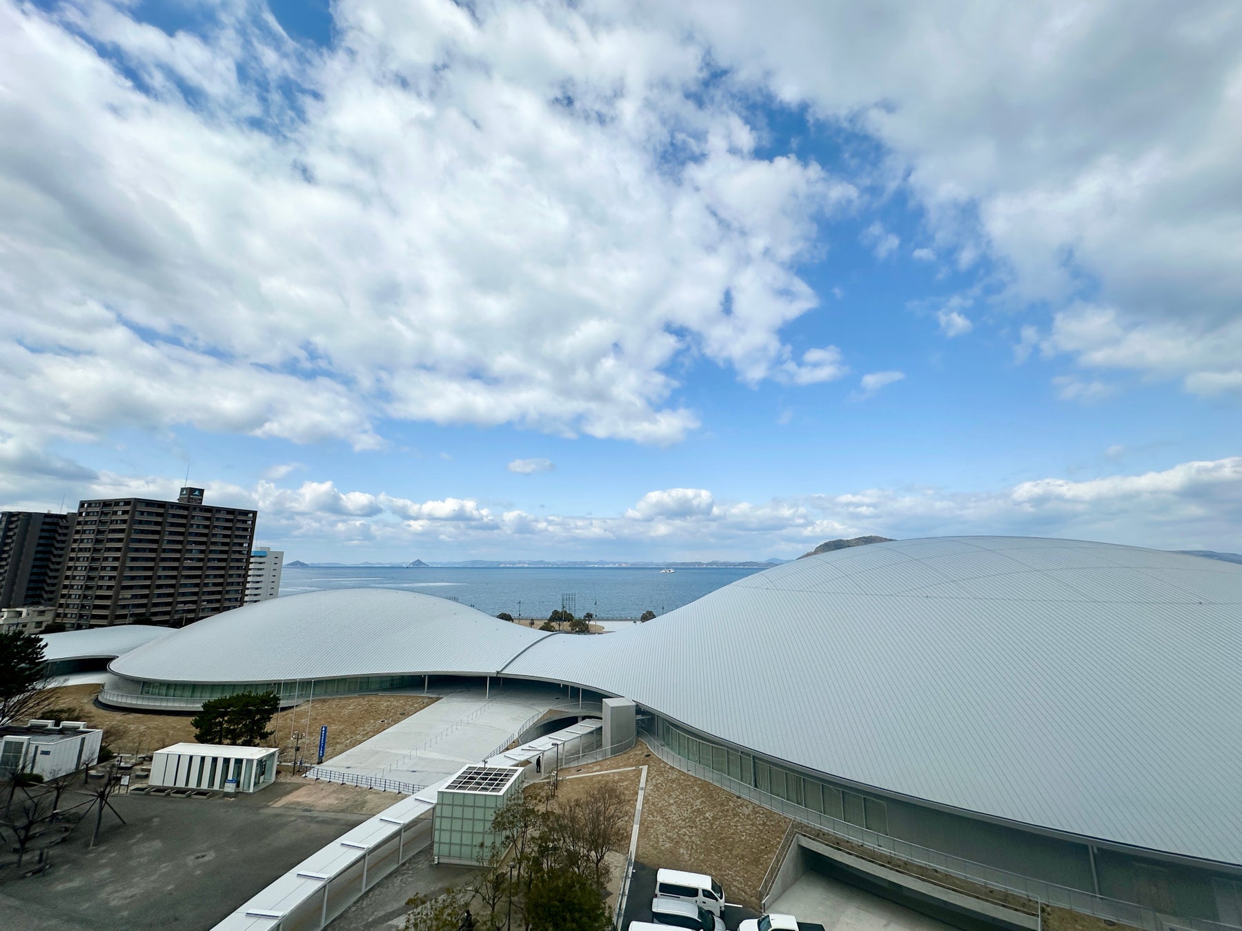 神戸を朝出発、昼過ぎに高松に到着しアリーナへ。