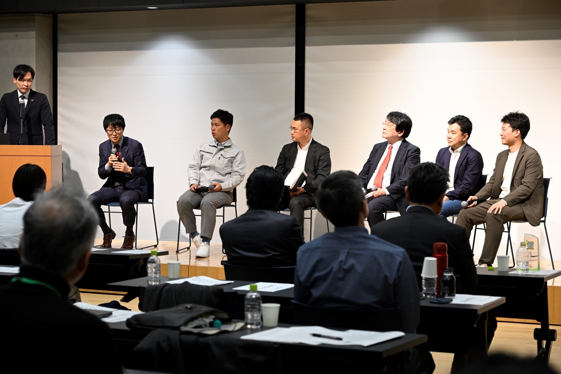 会場には、環境に配慮した農業や気候変動への対応に関心を寄せる農家やJA、消費者、自治体、企業、研究者などが全国から集まり、俳優でみどりGXラボ応援団の永島敏行さん、昨年7月の設立記念イベントに農相として出席した自民党の坂本哲志国対委員長らも駆けつけました。有機農業に詳しい千葉商科大学の小口広太准教授が「食と農のつながり~その一歩先へ~」と題して記念講演。地産地消と有機農業を組み合わせ、消費者が地域の農業に共感して支える関係性の構築を提案しました。パネルディスカッション「みどりパートナーズサミット」には、みどりGXパートナー会員の6社・団体(JA全中、フェイガー、ボストンコンサルティンググループ、日本製紙、クオンクロップ、TOWING)が登壇し、農業者やJAと他産業の連携の在り方を巡って議論しました。