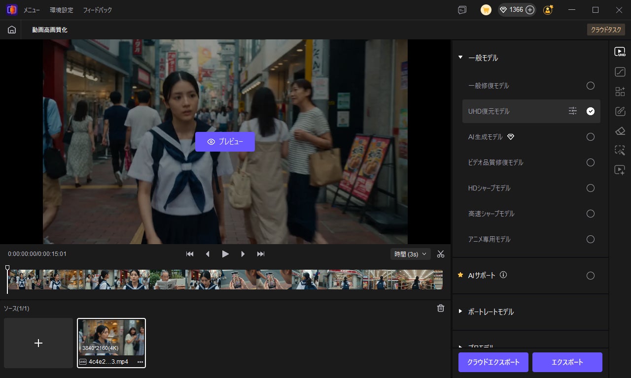 ステップ6:生成した動画を即座に4Kまで高画質化できます。