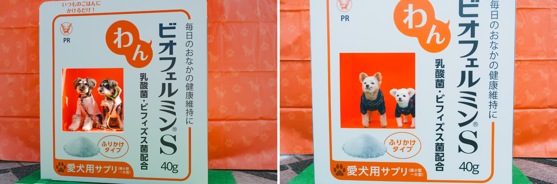 大正製薬株式会社の「わんビオフェルミンS」フォトスポットでは、愛犬が“パッケージになりきり”撮影できるユニークなブースが登場し、会場でもひときわ賑わいを見せていました。来場者の皆さまは愛犬をパッケージ内に収め、思わず笑顔がこぼれるような写真撮影を楽しまれていました。