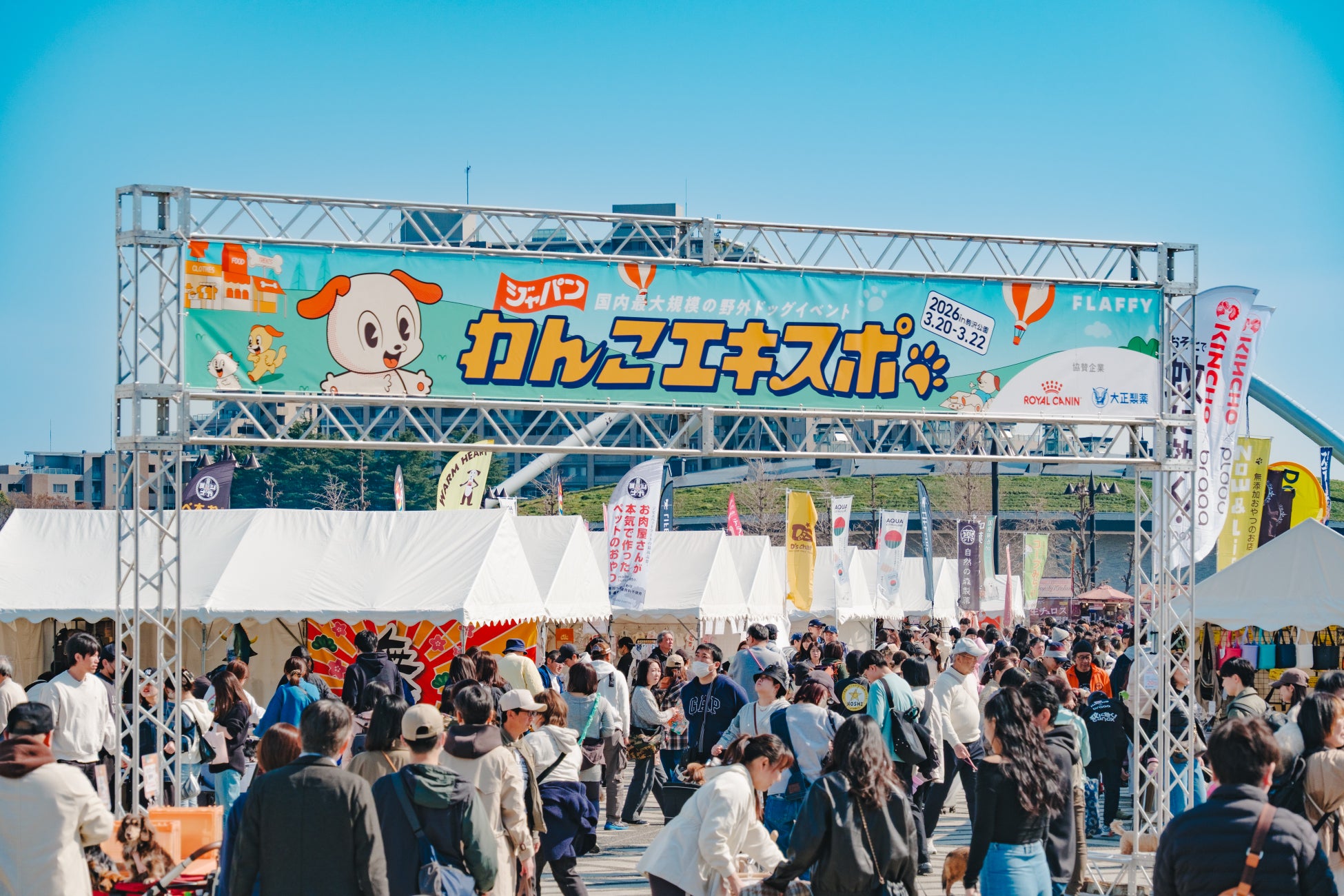 “ペットとヒトの関係をフラットに”をコンセプトに、国内最大級の犬情報メディア事業や愛犬服リメイクサービスを展開する株式会社FLAFFY(本社:東京都中野区、代表取締役:廣田 智沙)は、3月20日(金・祝)~22日(日)、東京・世田谷区の駒沢オリンピック公園にて「ジャパンわんこエキスポ2026 in 駒沢公園」を3日間にわたり開催し、盛況のうちに終了いたしました。会場には多くのわんちゃんと飼い主様が来場し、全国から集まった多彩なペット関連ブランドやキッチンカー、ステージコンテンツ、フォトスポットなどが来場者を魅了しました。愛犬家とその愛犬が一緒に楽しめるコンテンツがそろい、終始笑顔があふれるイベントとなりました。