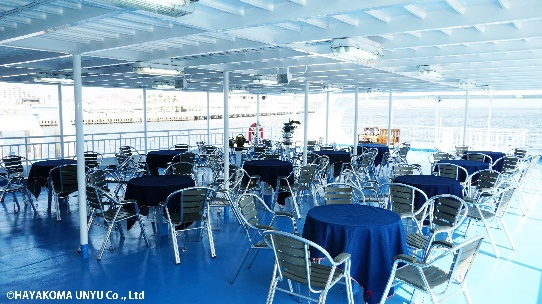 【船体スペック】旅客定員90名、長さ25.7m 、幅6.8m、 深さ2.4m、総トン数90トン