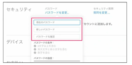 Step3: 現在のパスワード、新しいパスワード、確認用パスコードを入力し、「パスワードを変更」をクリックします。