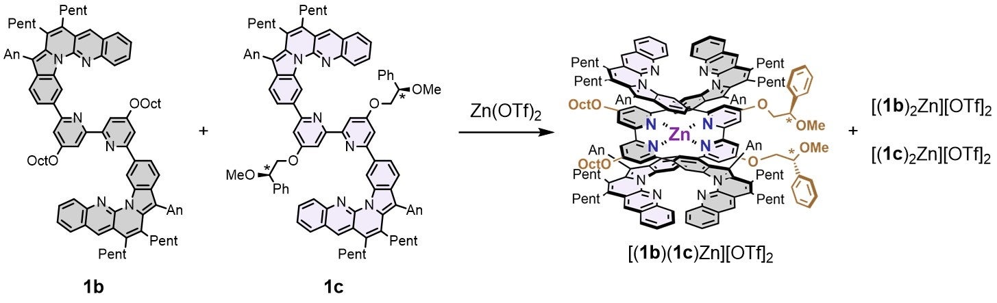 図 ヘテロレプティック錯体[(1b)(1c)Zn][OTf]2