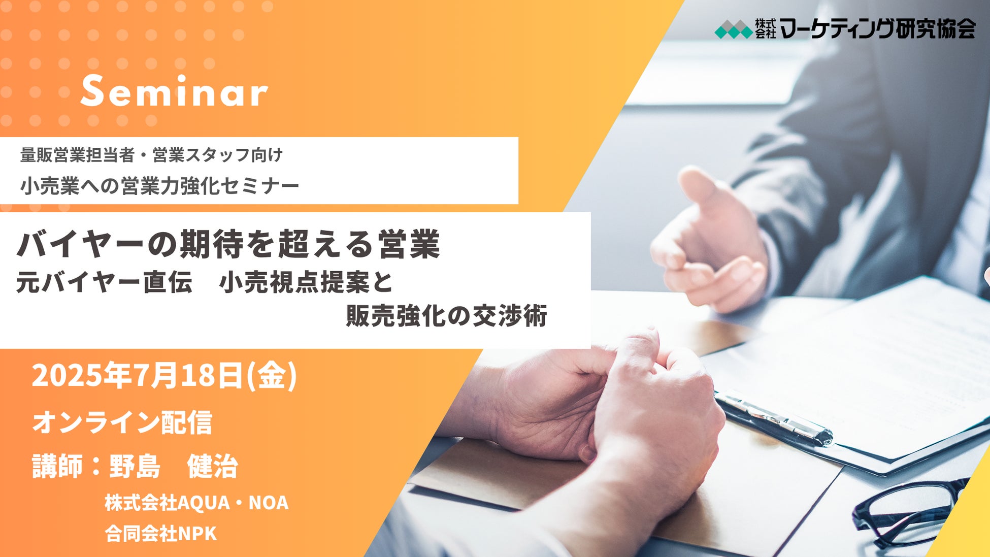 株式会社マーケティング研究協会はオンラインセミナー「元バイヤー直伝 小売視点提案と販売強化の交渉術」を2025年7月18日に開催します。