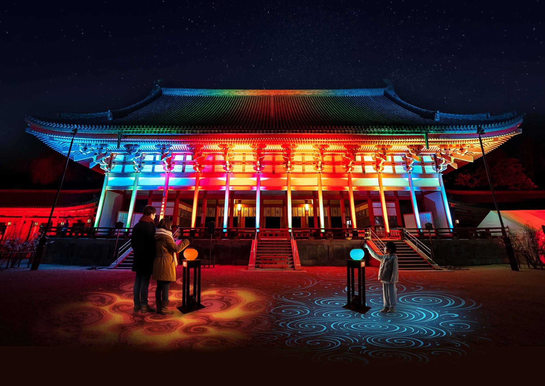 ※大極殿は2025年12月22日(月)まで工事中。工事期間中は、NAKEDディスタンス提灯® 有料版(500円)を1グループ1個無料貸出。