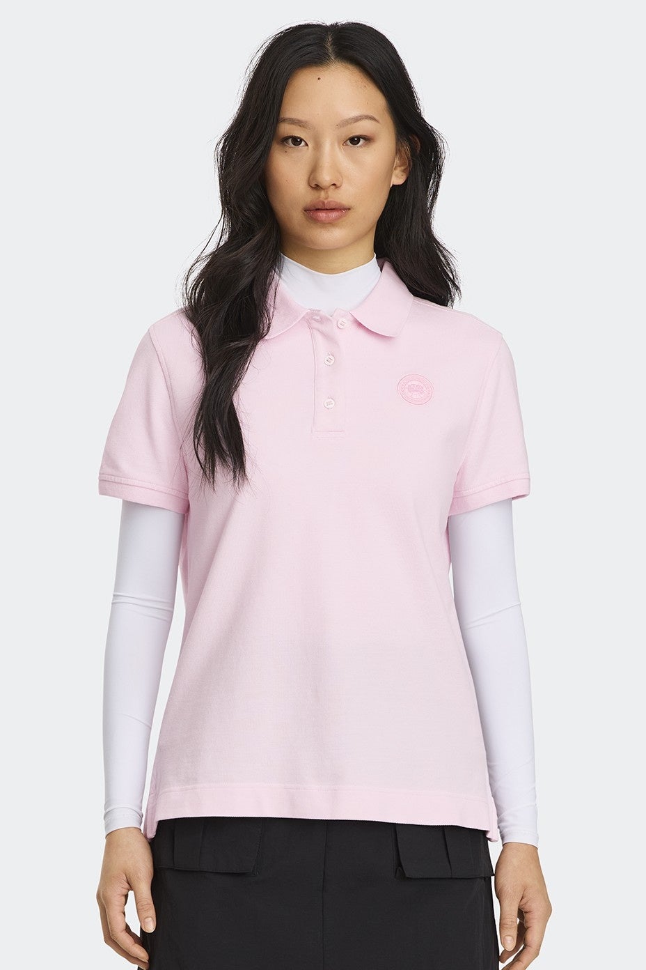 コットンピケ素材を使用。リブニットの襟やサイドスリットなど、ウエスト周りの動きやすさを追求したデザインが特徴です。