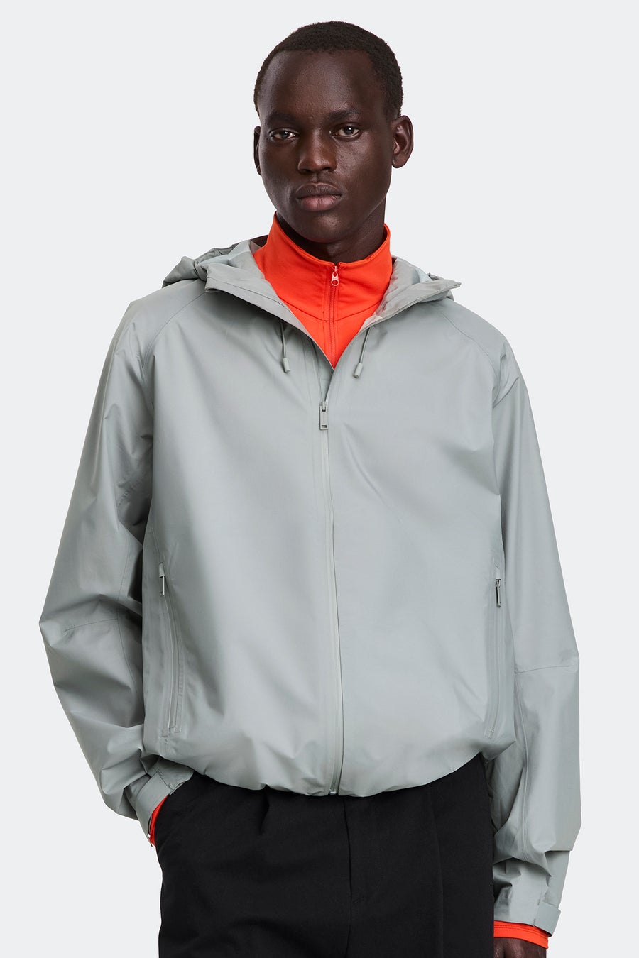 雨や寒さが厳しい日には、ストラタスコレクションのアイテムとのレイヤードがおすすめです。天候に合わせて快適なスタイリングを実現します。