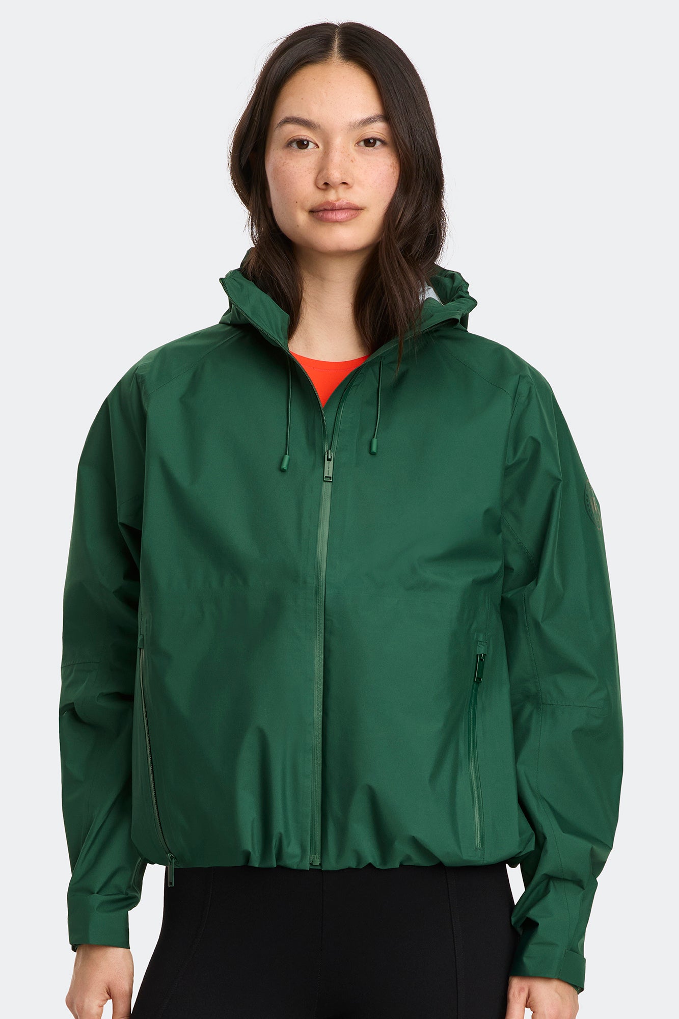 軽量なシェルに、高い耐久性と通気性を兼ね備えた3レイヤー素材を使用。雨の日でも快適に過ごせる機能性を備えています。