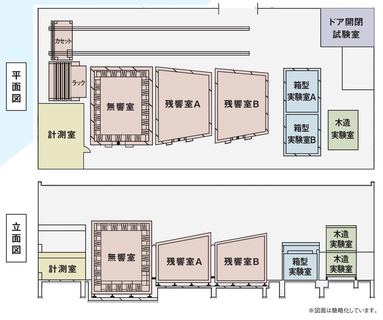なお、1,000㎡規模の音響専門の実験棟の建設は建材業界初であるとともに、床・壁・天井の全てをCLTで構成した音響計測用木造実験室の設置も建材業界初となります。