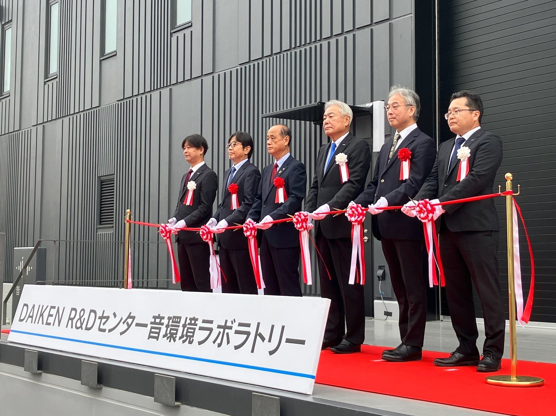 DAIKEN株式会社(大阪市北区、社長:億田正則)は、この度、建材業界初となる“音響専門の実験棟”『音環境ラボラトリー』(愛称:『音ラボ』)を、岡山工場(岡山市南区)敷地内に開設しました。開設日となる11月13日には、オープニングセレモニーを執り行い、岡山市の大森市長や県庁職員をはじめ、ご来賓や当社関係者を含む約40名が出席しました。