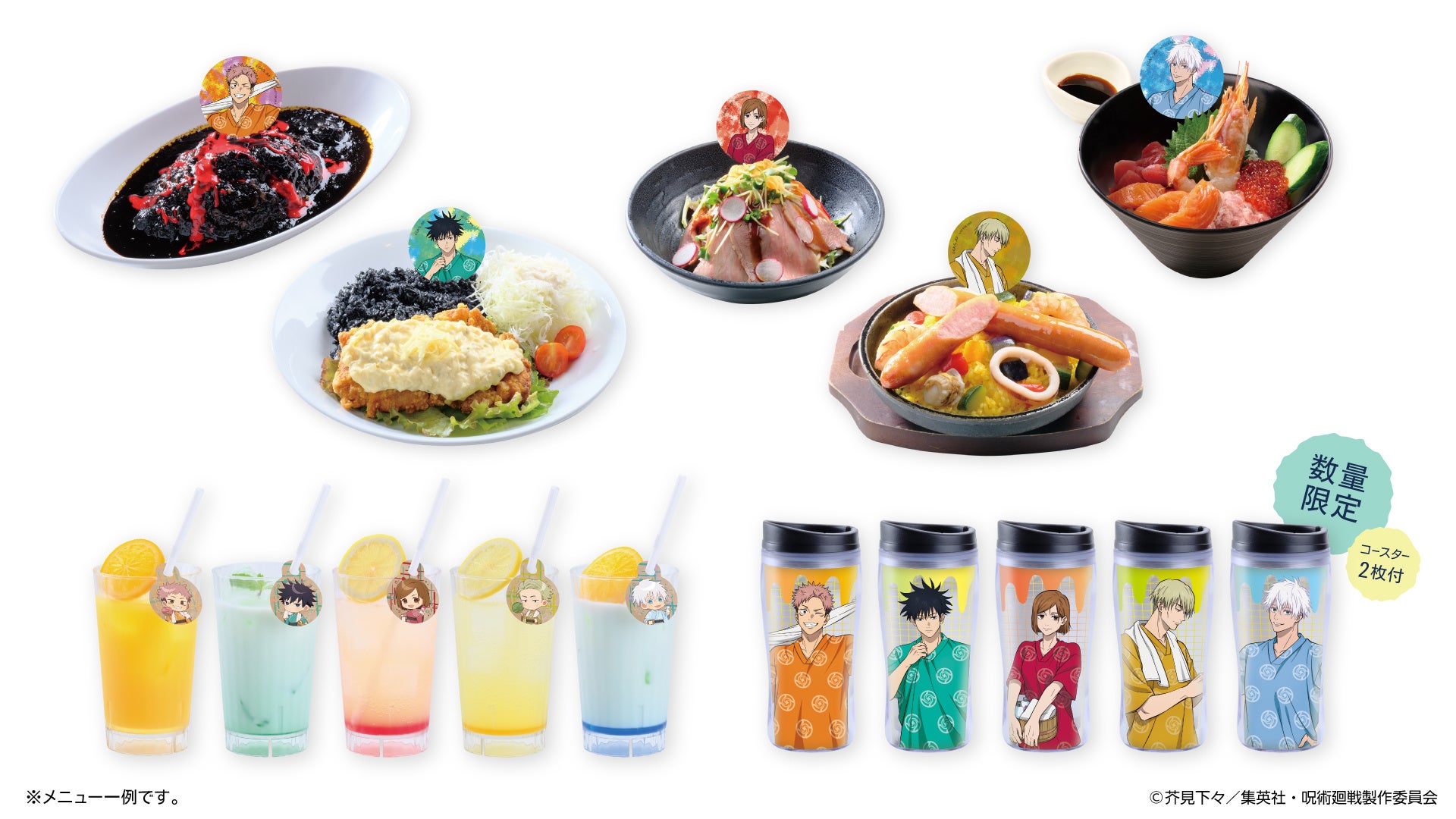 虎杖 悠仁をはじめとする5人の呪術師たちが、湯上りをイメージした館内着姿で登場!コラボグッズやメニュー販売の他、コラボ風呂、Xキャンペーンなど内容盛りだくさん!!