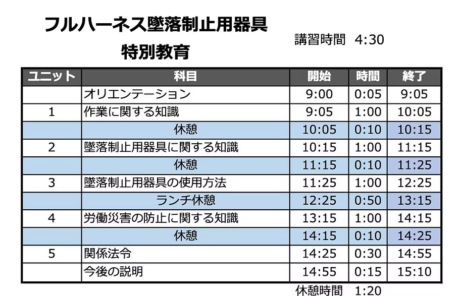 【5月のオンライン講習:フルハーネス特別教育】便利なオンライン講習会のスケジュールが公開されました。