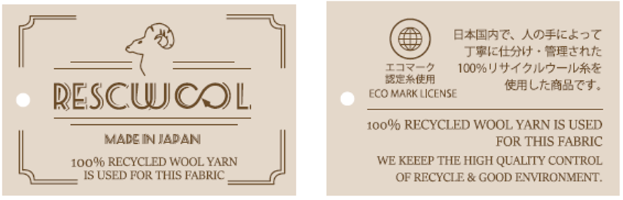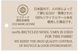 レスキュール®は、高級スーツを作る際の落ちワタや、余分に作られて余ってしまった糸や生地など、まだ服になっていない材料を再利用しています。落ちワタは、通常スーツを作るワタよりは短く、コートを作るウールのワタよりは少し長いため、滑らかな肌触りが特徴です。70年近くウール製品のリサイクルを行っている尾州の工場で作っており、細かい工程をきっちり人の手で管理しているからこそできる、質の高い貴重なウール素材となります。安定したリサイクルと紡績技術によってつくられた、レスキュール®に使用されているリサイクルウール糸は、エコマークライセンス※取得済みです。