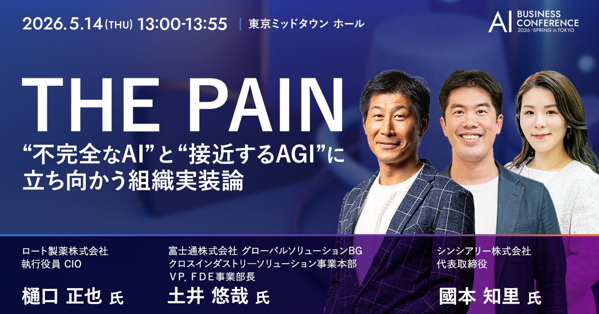 シンシアリー株式会社(本社:東京都渋谷区、代表取締役:國本知里)は、2026年5月14日(木)に東京ミッドタウン ホールで開催される「AI BUSINESS CONFERENCE 2026 春 in 東京」のキーノートセッションに、代表の國本知里が登壇することをお知らせします。