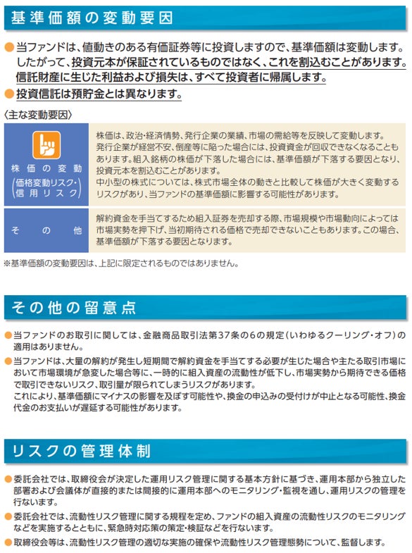 当ファンドのお申込みにあたっては、販売会社よりお渡しする「投資信託説明書(交付目論見書)」の内容を必ずご確認のうえ、ご自身でご判断ください。