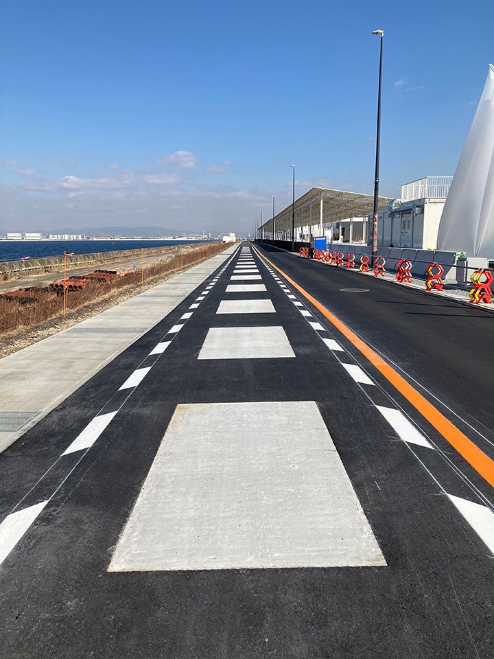 株式会社大林組(本社:東京都港区、社長:佐藤俊美)は太平洋マテリアル株式会社(本社:東京都北区、社長:岡村隆吉)と共同で、低炭素型の高性能セメント複合材料(※1)「ユニバーサルクリートGX」を開発しました。本材料は、2025年日本国際博覧会(大阪・関西万博)の来場者移動EVバスのEMSおよびFMS技術実証(以下、本実証)において、走行中ワイヤレス給電システムの道路設備に適用しています。
