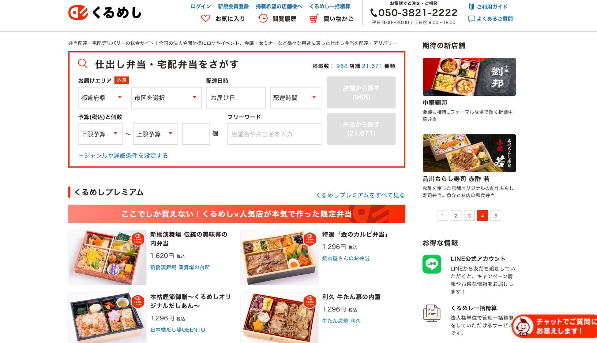 国内最大級の法人向けフードデリバリーサービス「くるめし弁当」やケータリング予約サイト「シェフコレ」を運営。