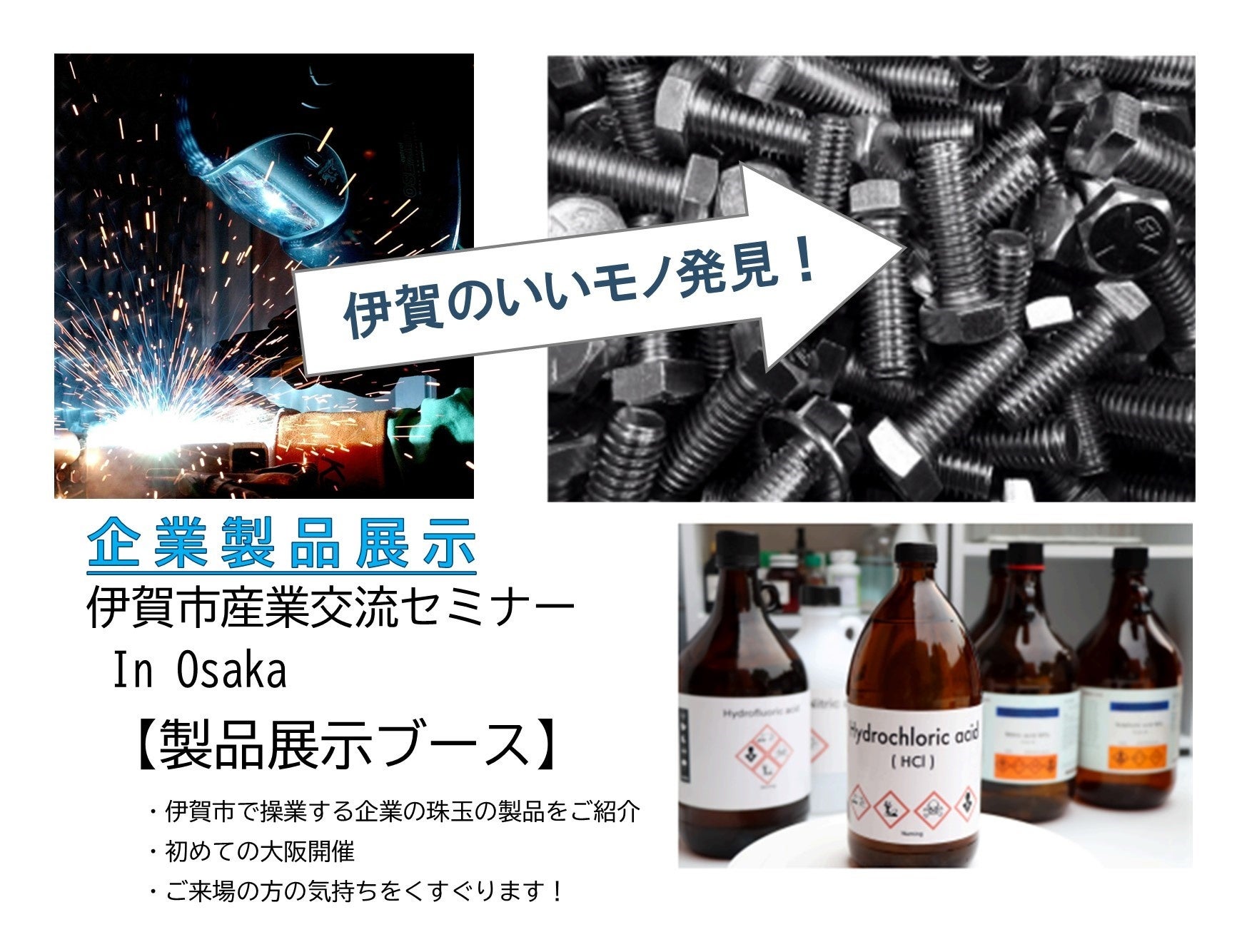 伊賀市で操業する12社による製品展示(市主催)を大阪で初めて行います。