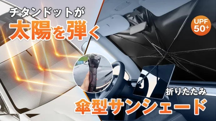 『チタンシルバーのドット設計で効果的に散熱!強い日差しから愛車を守るサンシェード』がMakuakeにて公開スタート!公開初日に目標金額達成しました。