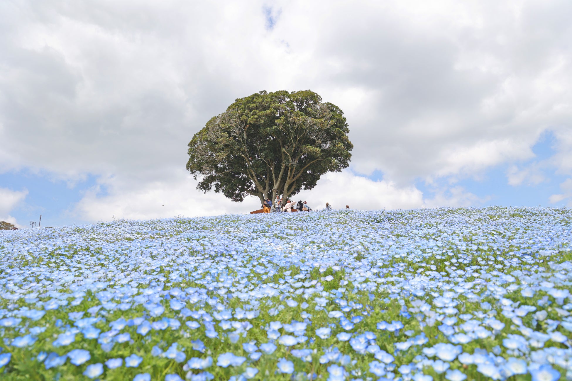ゴールデンウィークは鑑賞にぴったりのタイミングで、100万本のネモフィラが一面を爽やかな青に彩る圧巻の花畑をお楽しみいただけます。