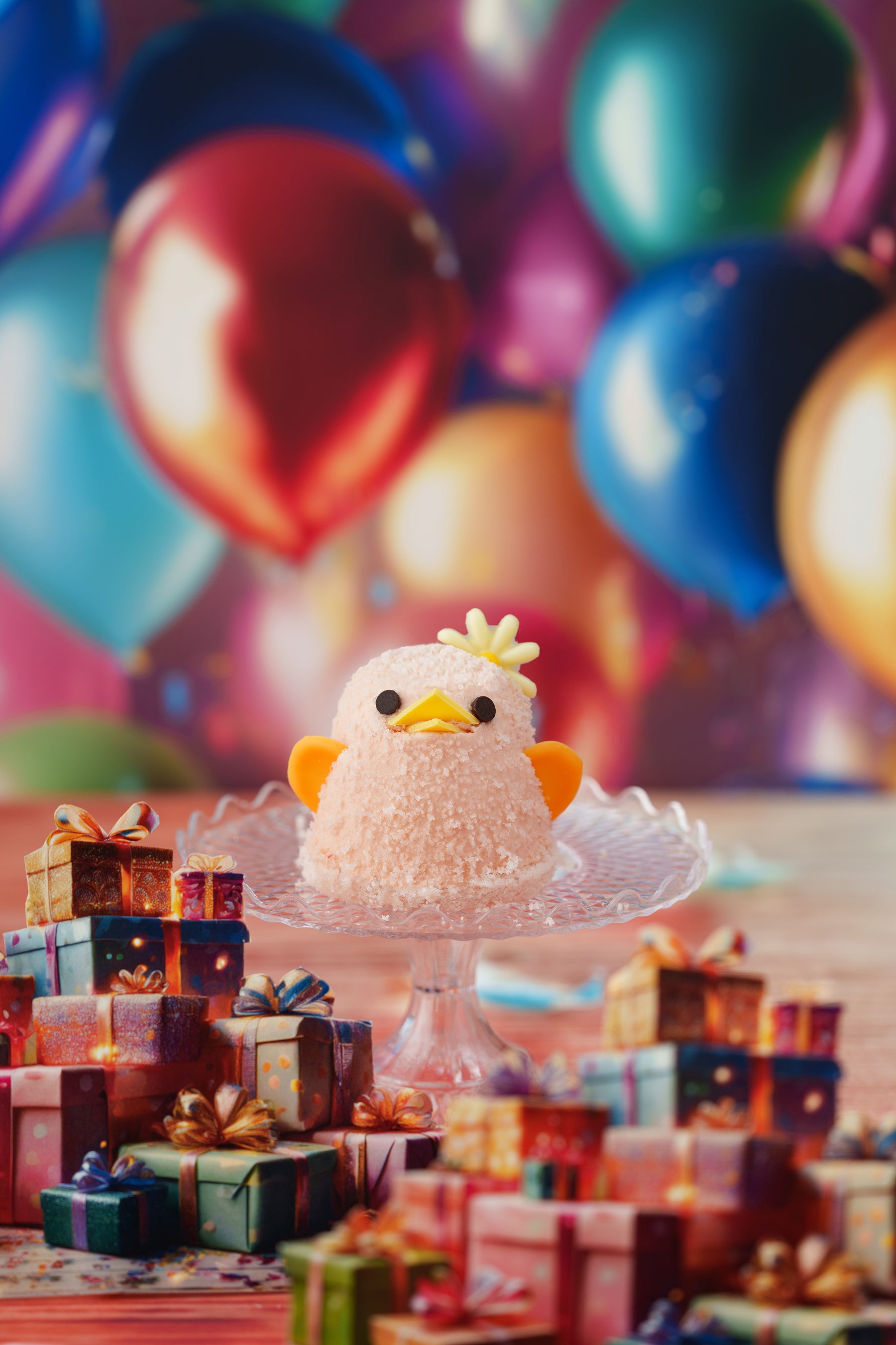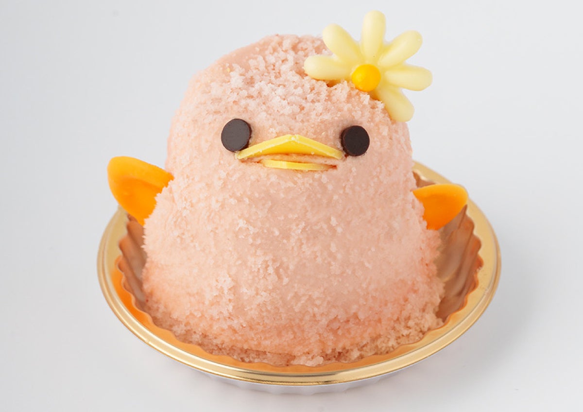 名古屋コーチン卵を使った濃厚プリンと、14(ジューシー)なオレンジゼリーを、パイナップルとレモンの爽やかなババロアでふんわりと包みました。ほんのりオレンジ色のクラムで見た目もパッと明るく、ぴよりんのかわいさがより引き立ちます。頭にちょこんと刺さった花の形のチョコレートオーナメントと、羽のチョコレートもオレンジ色で統一感ばっちり♪お祝いムードをぐっと盛り上げてくれる、見た目も味も特別な、アニバーサリーにぴったりのぴよりんです。