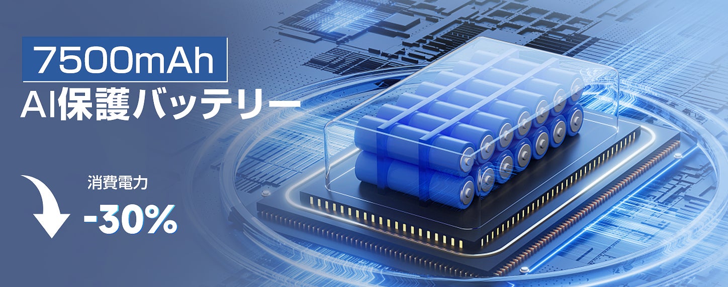 7500mAh大容量バッテリー&USB-C充電でどこでも手軽に使用可能