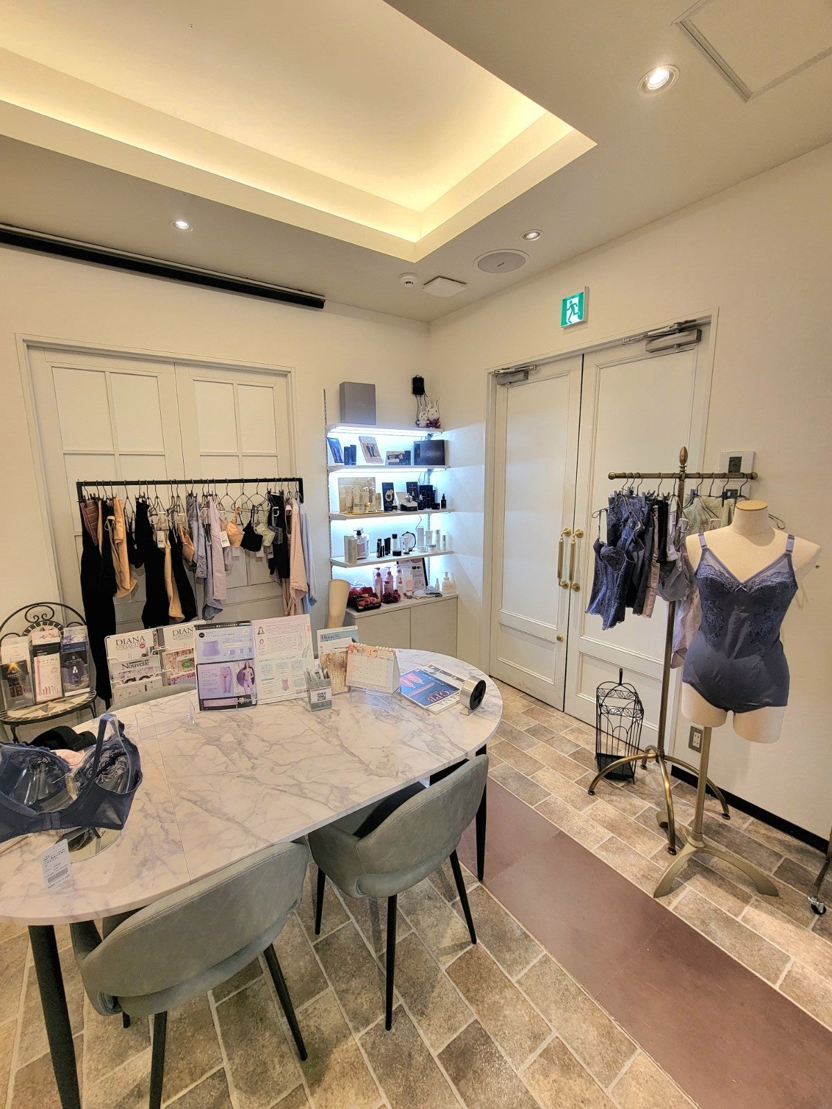 プロポーションづくりのダイアナの直営店舗として、補整下着や栄養補助食品、ボディケア、スキンケアを取り扱っています。
