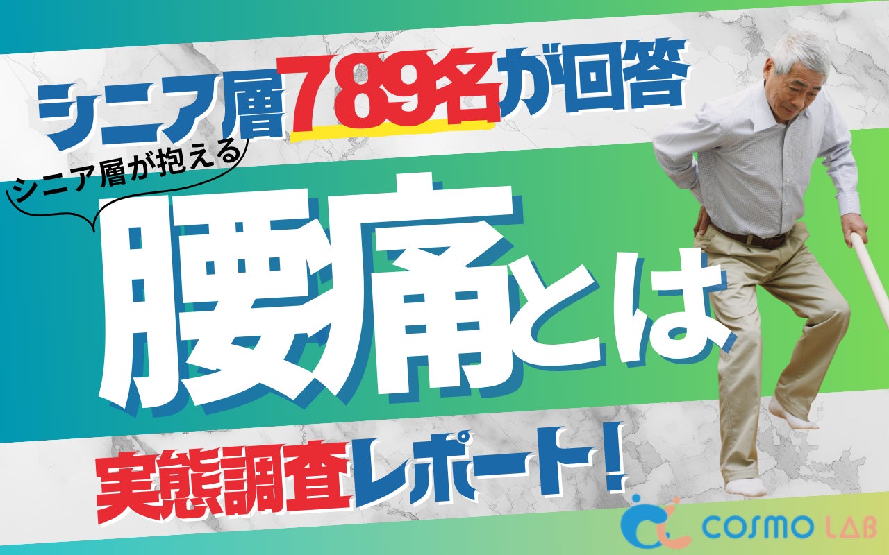 シニア専門のマーケティングプラットホーム コスモラボ(会社名:コスモヘルス株式会社、本社:東京都港区、代表取締役社長 小塚 崇史)がシニア層の『腰痛』に関するアンケートリサーチのレポートをリリースしました。本レポートでは、50代以上のシニア層を対象に、腰痛に関するアンケート調査を実施しました。腰痛経験、痛みを強く感じる場面、要因認識、困りごと、運動歴、対処法と効果の実感までを整理し、腰痛の実態と支援設計に向けた実情が明らかになりました。
