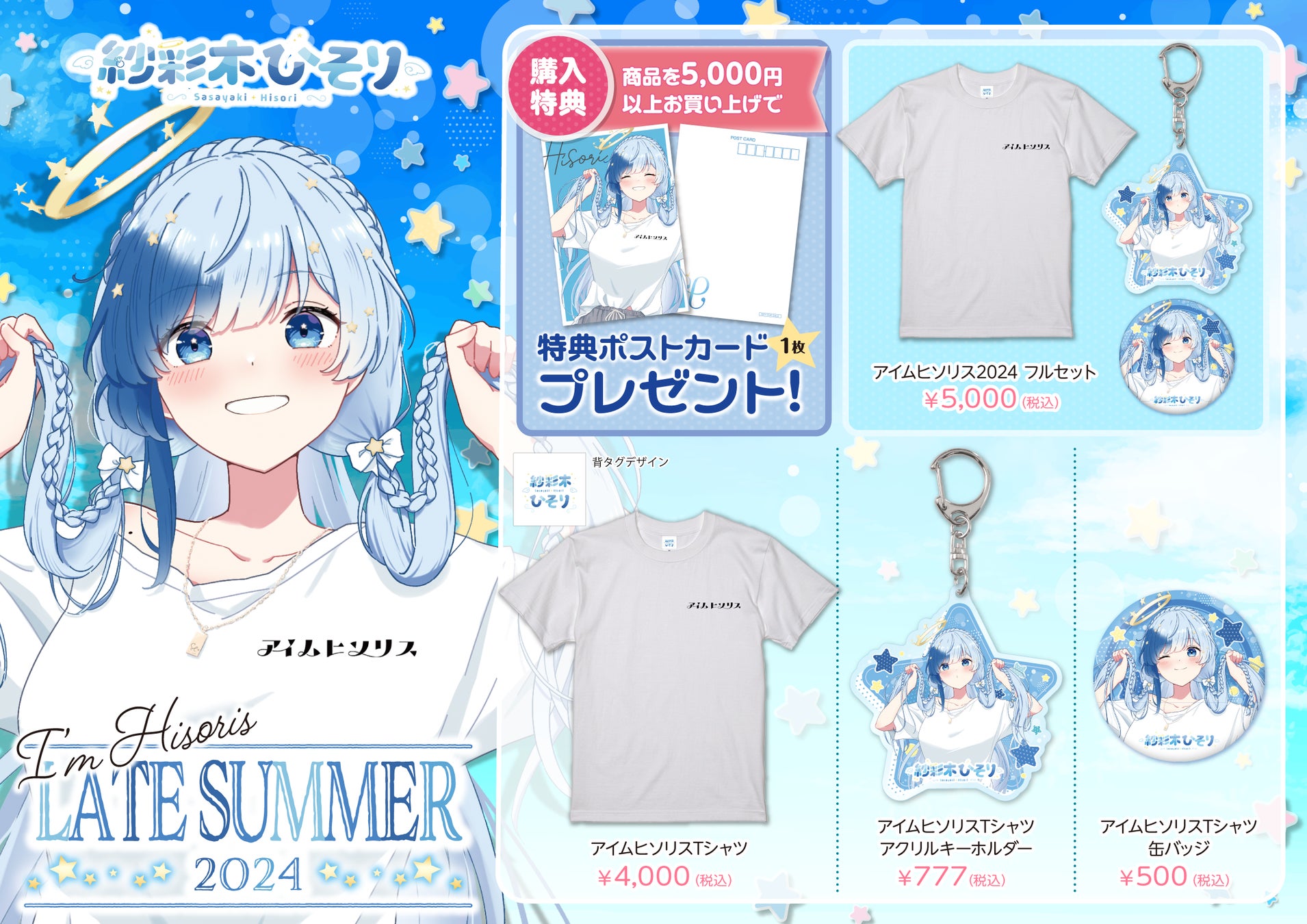 その「紗彩木ひそり Official Store HISOSTORE」にて、夏のオリジナルグッズを8月30日21時より販売開始いたします。