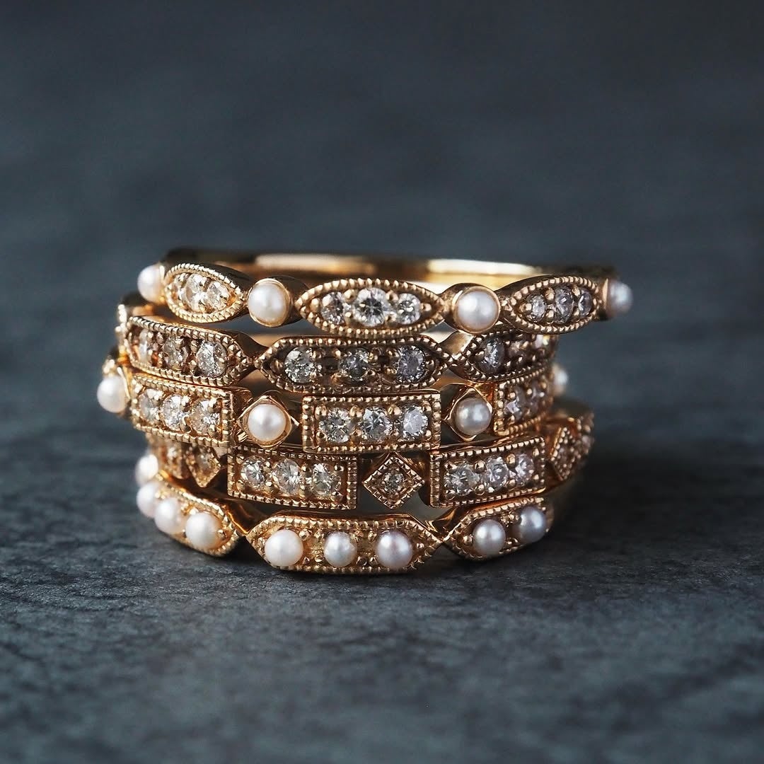 『ミルゴシック』は、ゴシック建築の壮麗さを纏うコレクション。『ミルシェノン』は、古典的なミル留め技法に幸せの象徴を込めて。『サンクルール』は、光と影が織りなす色彩の美しさを表現。いま話題の真珠をあしらったものなど、それぞれが独自の個性と物語を持ち、あなたの指先を彩ります。