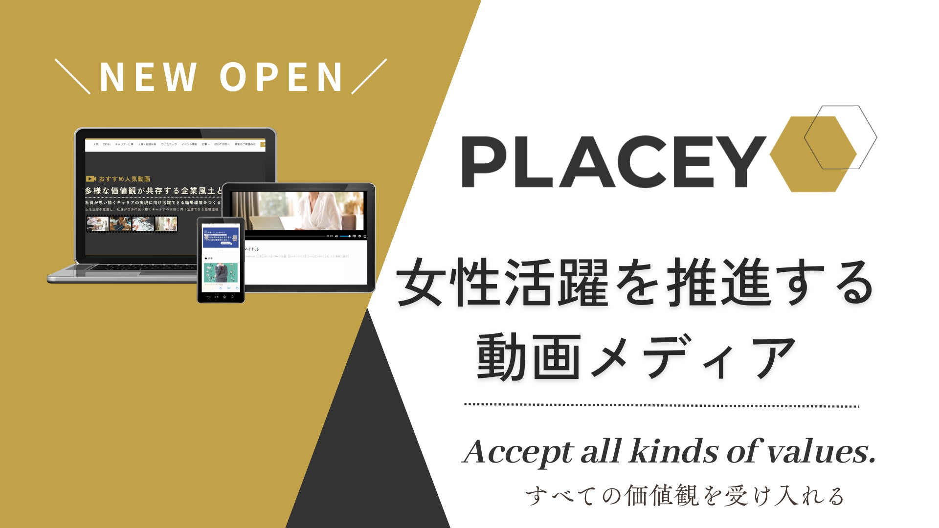 PLACEY(プレイシー)は、「PLACE(居場所・役割)」×「Diversity(多様性)」を掛け合わせた造語で、“Accept all kinds of values. すべての多様な価値観を受け入れる”をコンセプトとした女性活躍を推進する動画メディアです。