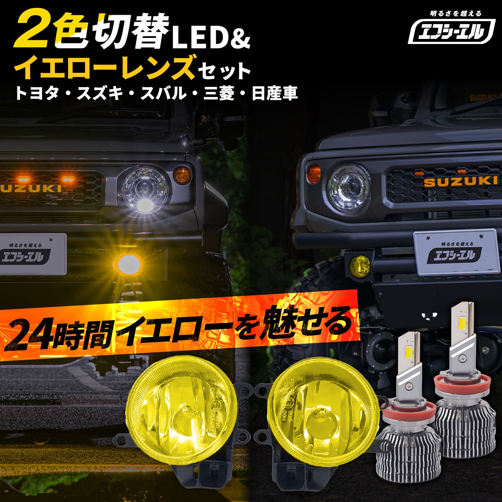 対象商品:イエローレンズユニット(タイプB/タイプC) + 新型2色切り替えLEDバルブセット
