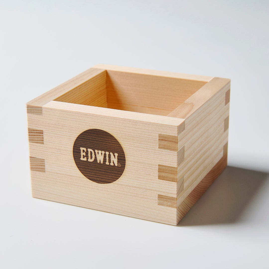 また、ご来店いただいた方に先着でEDWINの焼き印が入ったオリジナルの升をプレゼント。