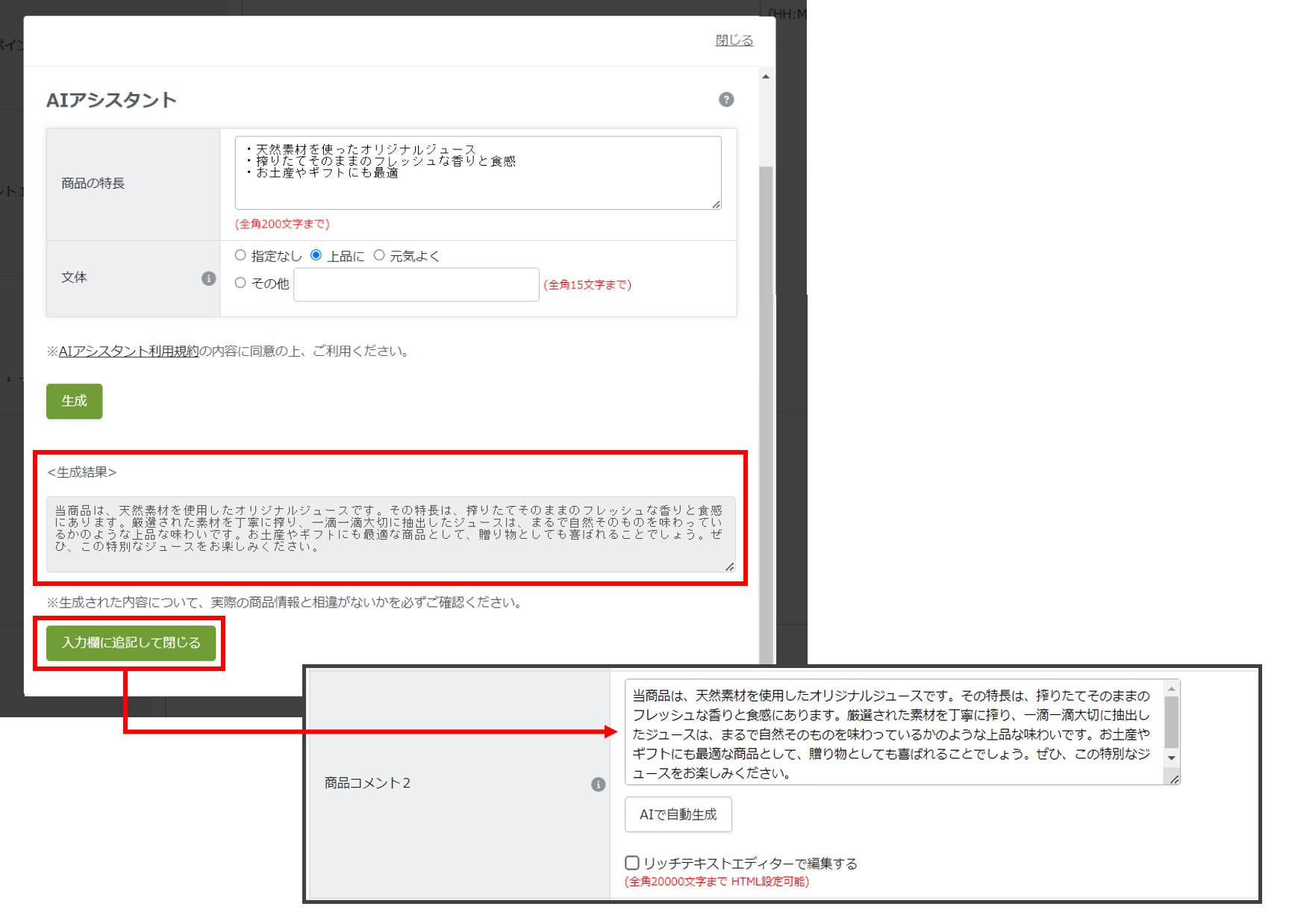 「AIアシスタント」で商品説明文を簡単作成!