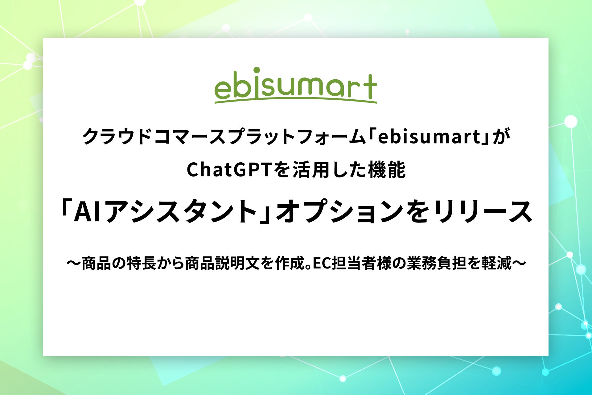 クラウドコマースプラットフォーム「ebisumart」がChatGPTを活用した機能「AIアシスタント」オプションをリリース