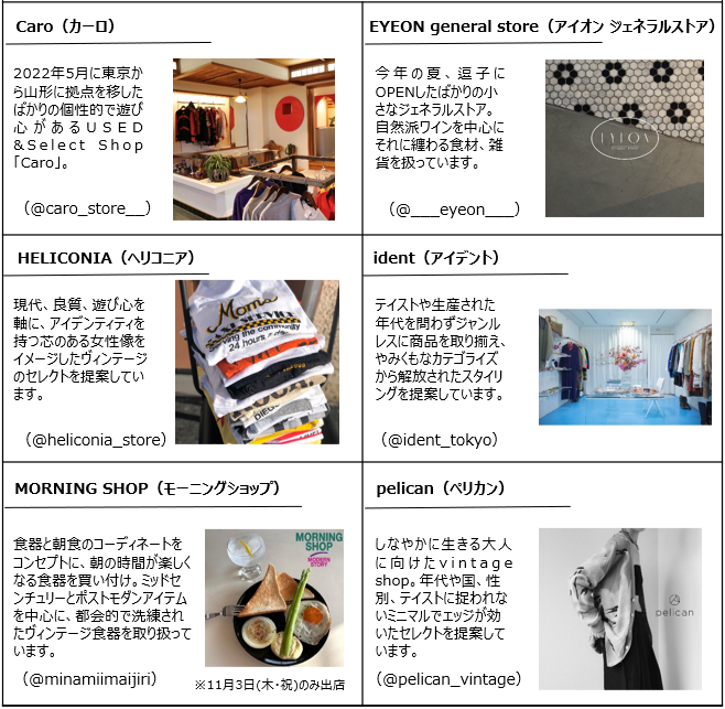 〔出店ブランド〕Caro/HELICONIA/MORNING SHOP(11月3日のみ)/EYEON general store/ident/pelican