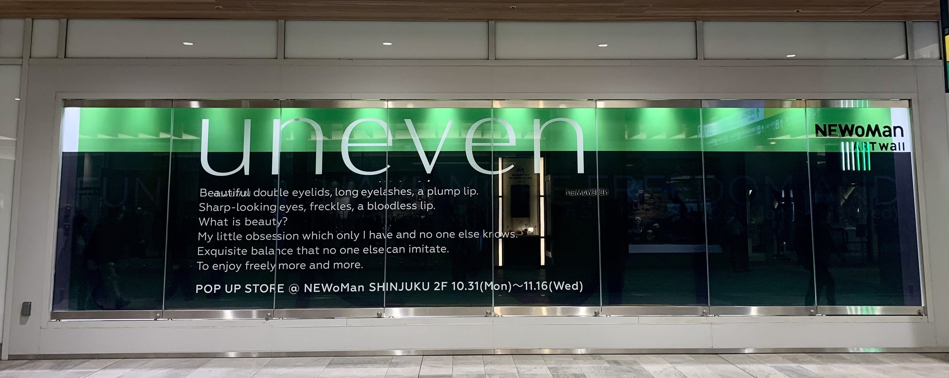 コスメブランドunevenのディレクター小島紗希さんが企画する初のアートウォール装飾を展開中。