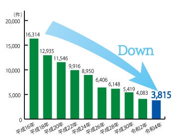 令和5年度の市民意識調査では、3割を超える方が治安が悪いと回答しています。しかし、実は市内の刑法犯認知件数は平成16年の1万6314件から令和4年には3815件まで減少しています。さらに、青色回転灯を備えた公用車で職員がパトロールを行うなど、防犯活動も積極的に行われています。
