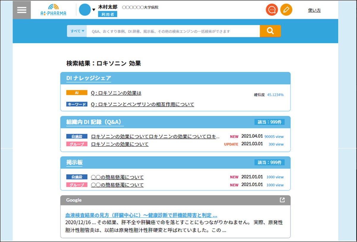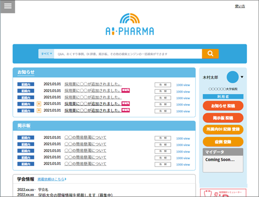 ・問合せ事例、薬学的介入事例などの情報をデータベース化でき、お知らせ機能による情報配信や、掲示板機能による薬剤師同士の双方向性の情報共有が可能