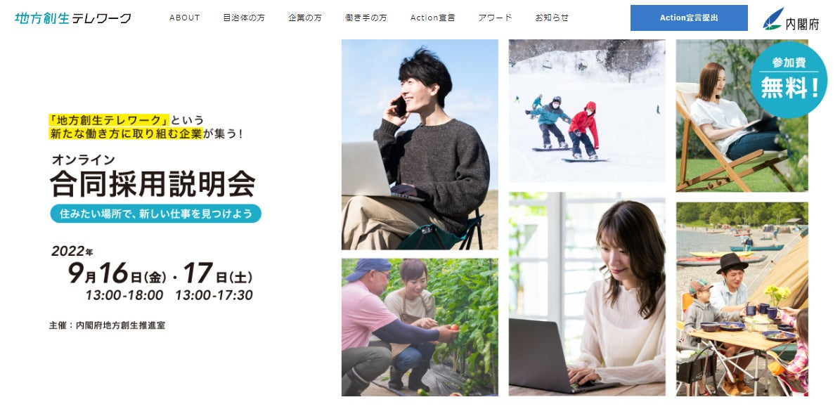 | イベント名 | 「地方創生テレワーク」という新たな働き方に取り組む企業が集う合同採用説明会 |