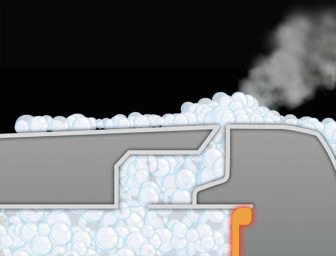 ふたの内側に設けた小さな穴で泡をつぶし、泡を蒸気とおねばに分離させることでふきこぼれを抑制する独自の構造です。ふきこぼれを気にせずに大火力で炊飯できるので、芯までふっくら炊き上げることができます。