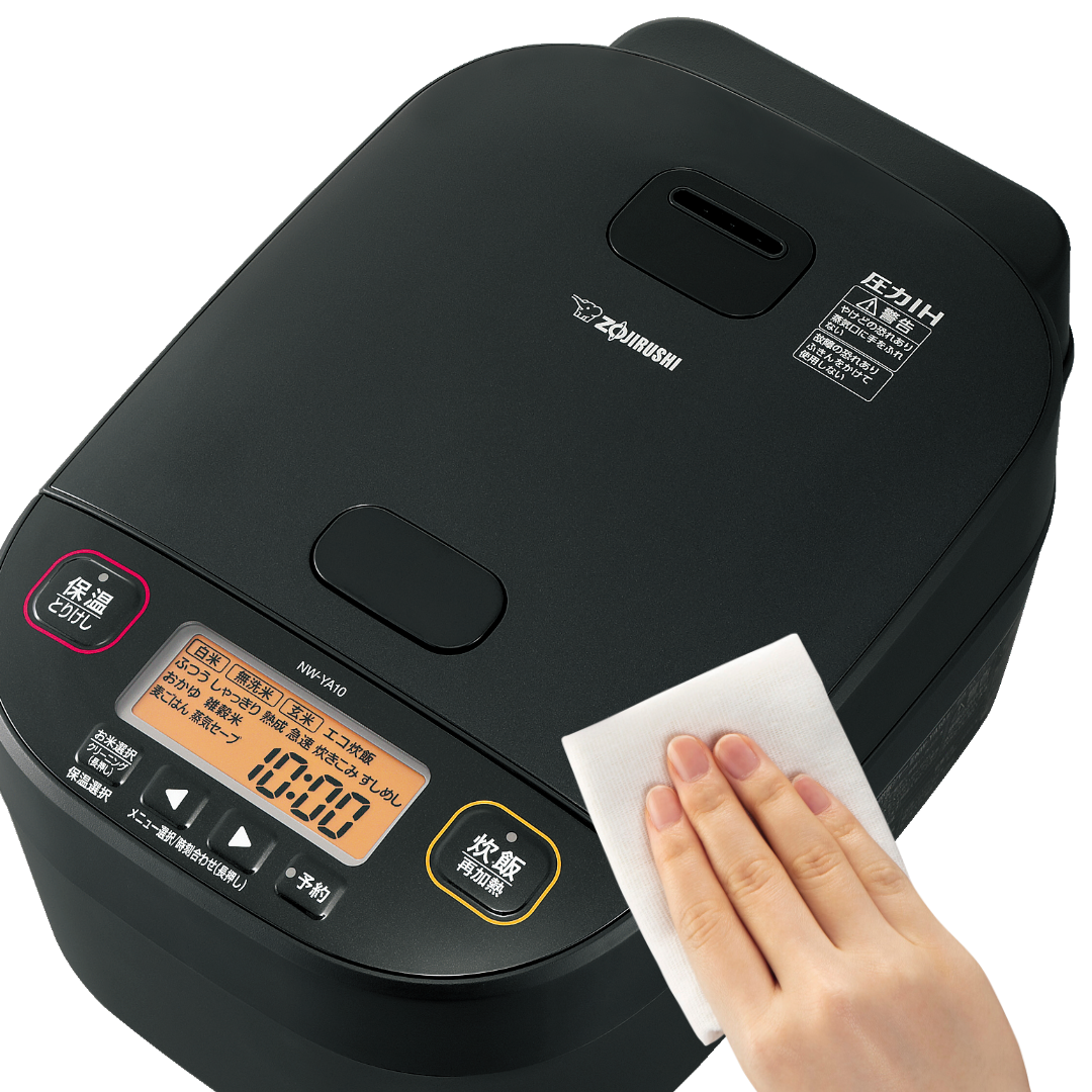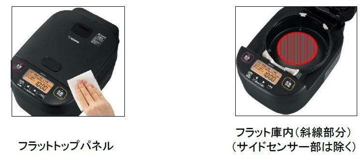 また、フラットトップパネルとフラット庫内の採用により、本体外側はもちろん庫内も汚れが拭きやすい構造です。毎回洗う点数は「内ぶた」と「内釜」の2点のみなので、お手入れも簡単です。