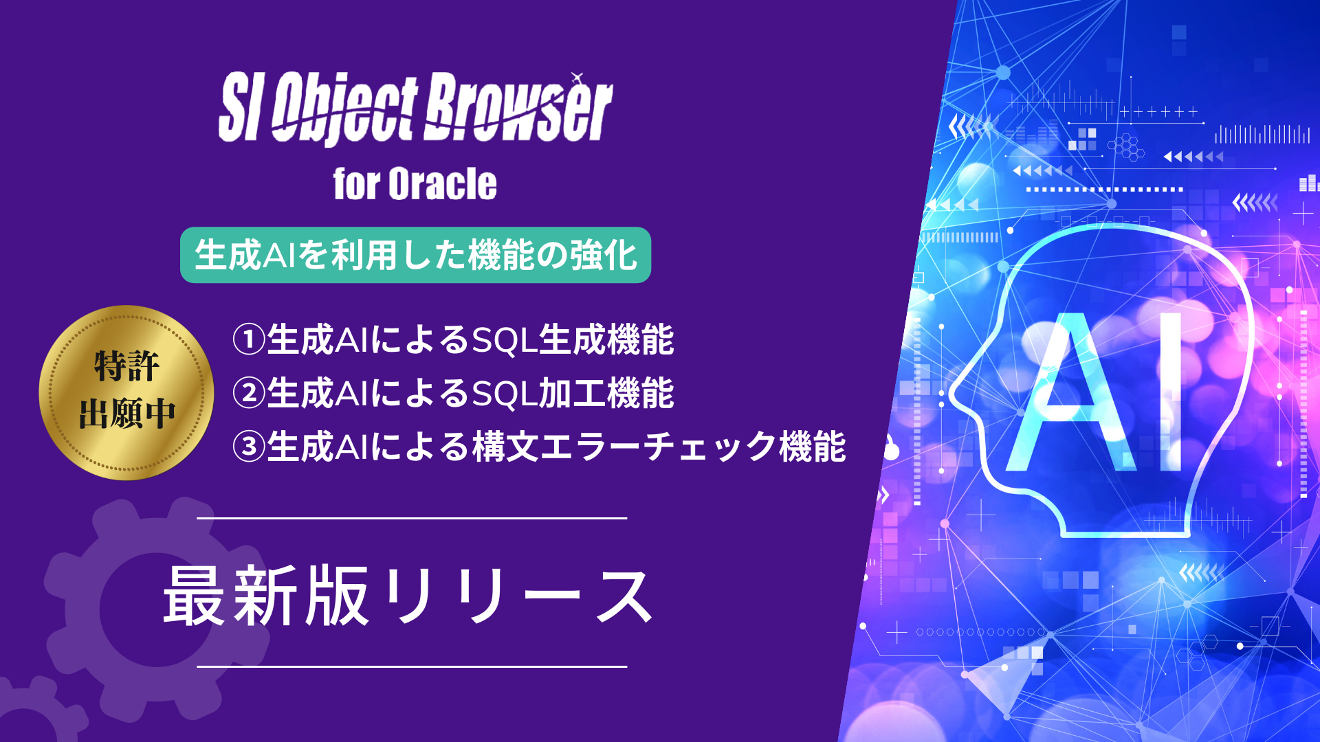 最新バージョンでは、生成AIを利用した開発生産性を向上する新機能、SQL生成、加工、エラーチェック・修正の機能を追加しています。
