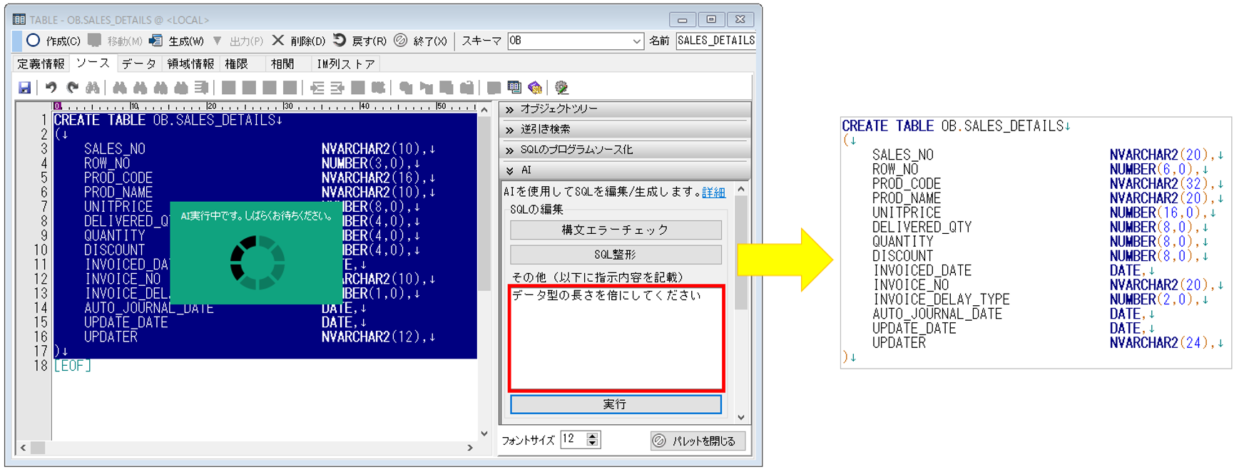 データ型の長さを倍にする等、従来は手間のかかったSQL加工を省力化することができます。