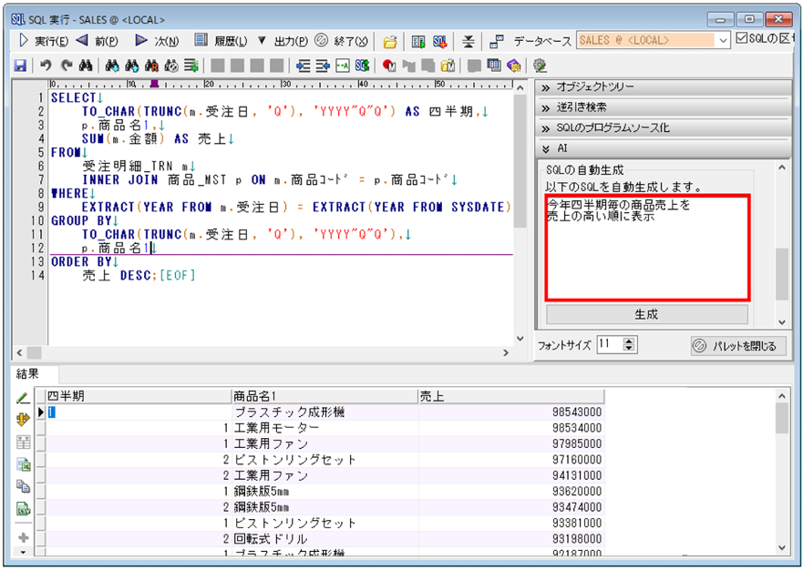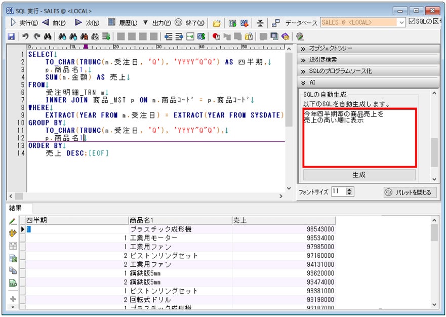 日本語のプロンプト(指示文)からSQLを生成する機能を追加しました。