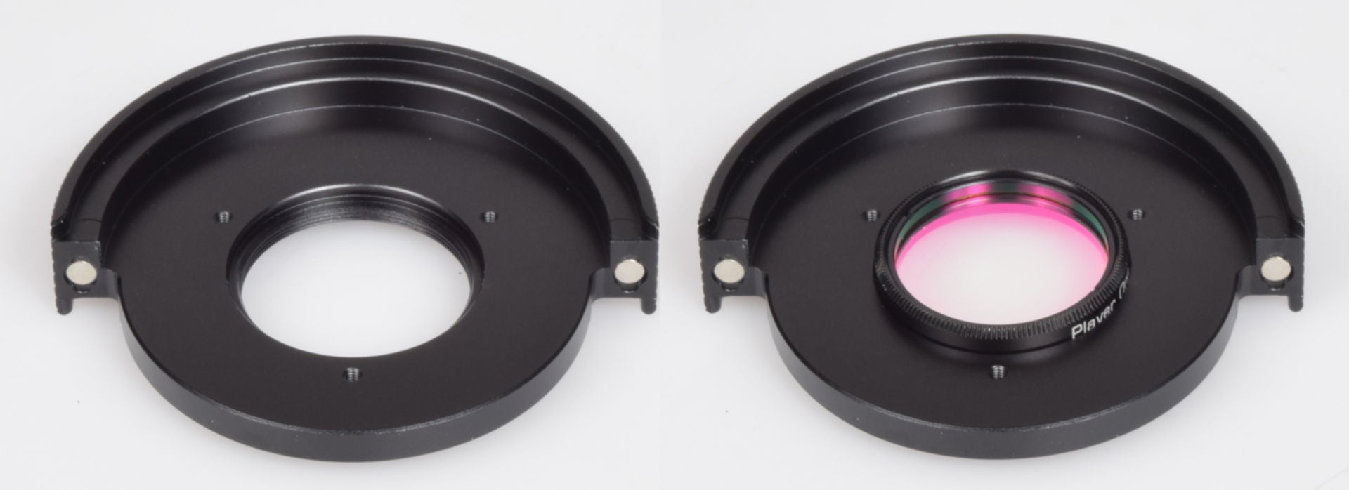・着脱可能な専用ホルダーは3種類付属します。48mmフィルター、31.7mm(1.25インチアメリカンサイズ)フィルター、31mm枠なし、36mm枠なし、50mm枠なしの5種類のフィルターに対応しています。