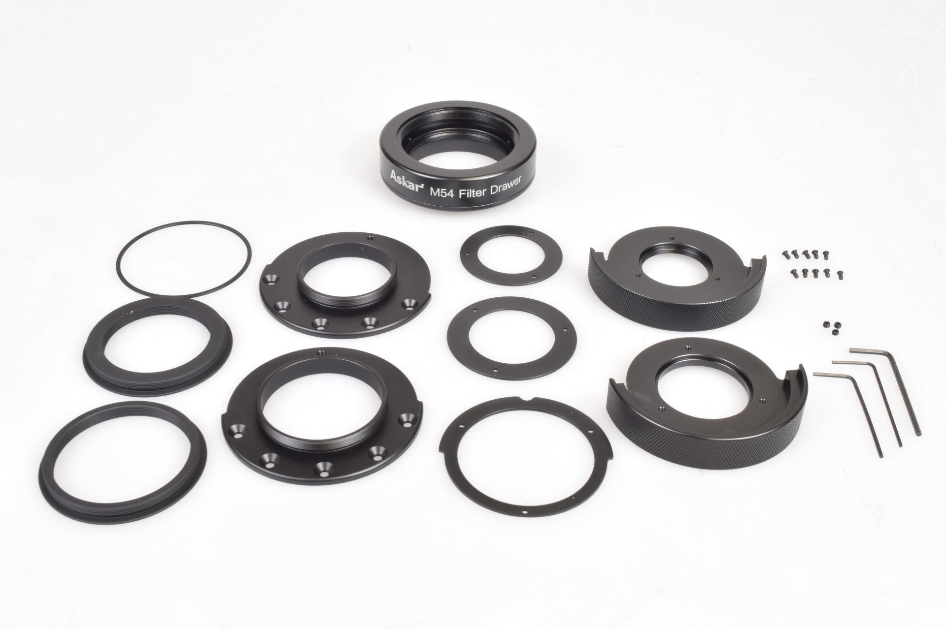 ・M54接続に対応した光路長18mmのフィルタードロワーです。内径が広くイメージサークルの広い望遠鏡でもケラレが発生しにくいフィルタードロワーです。M54以外にM42やM48用のアダプターが付属し、お使いの望遠鏡に合わせた構成で接続をすることができます。
